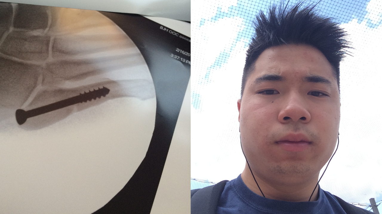Things all changed when I broke my foot and had to get surgery my first year of college